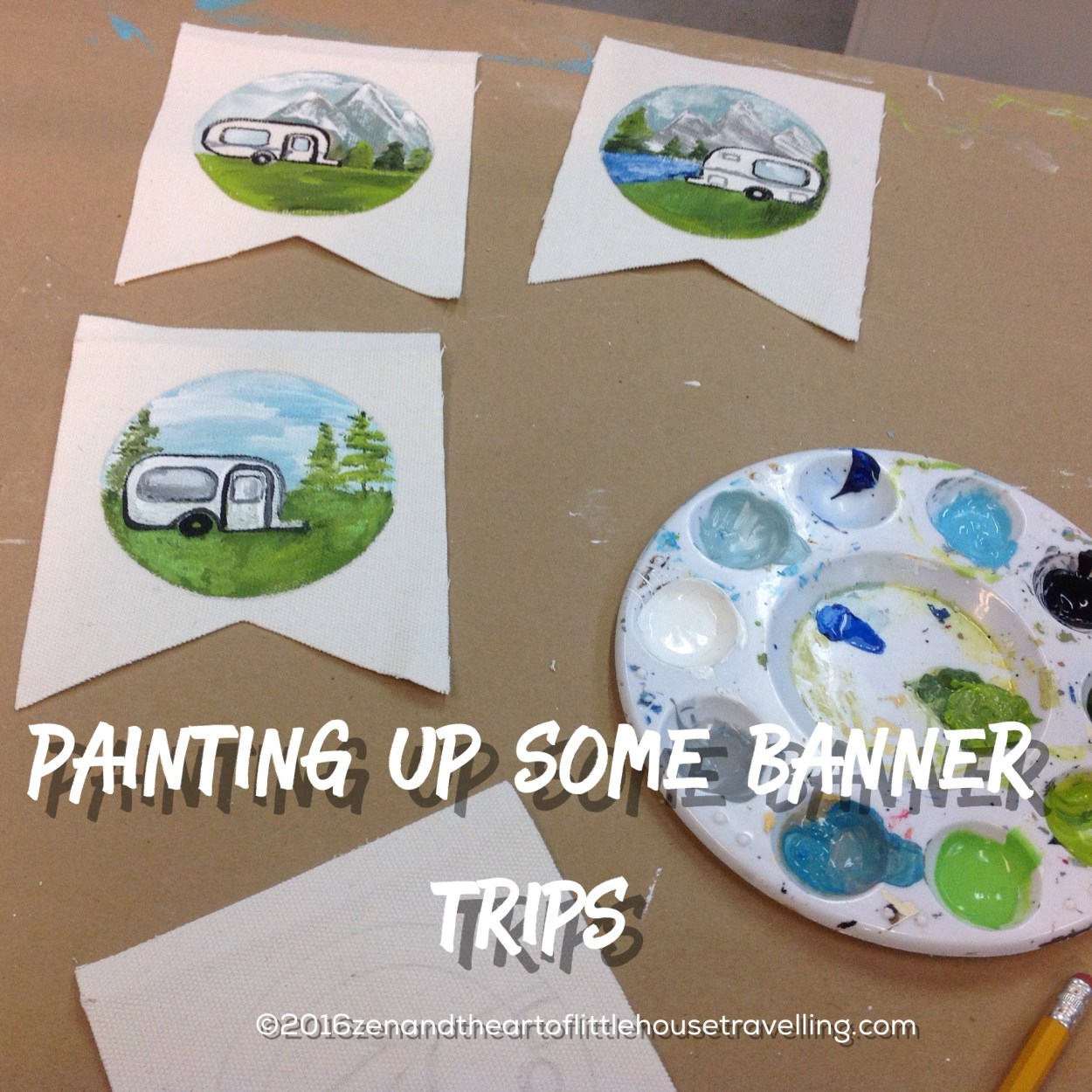 While waiting on big projects to dry in my studio today, I am painting up some of our Banner Trips™ on little fabric flags that will soon decorate our Casita.